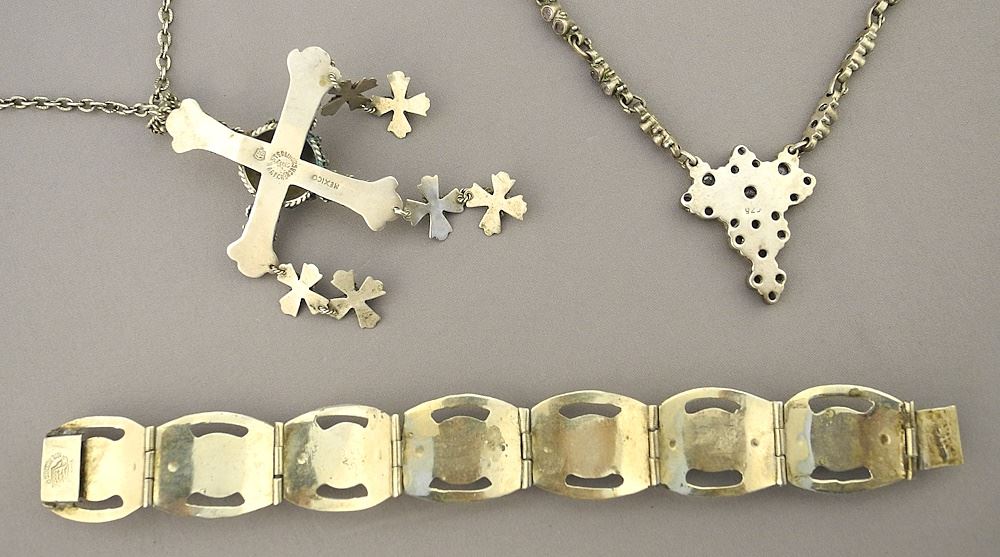 LOT 245 3 Pieces of Mexican & Other Silver Jewelry, TW 85.2 Grams. Estimate: $60 - $100 Sold For: $45 Auction Date: Tuesday, March 19 2024 at 4:00 PM