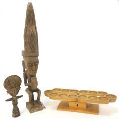 LOT 274 African Wood Carving of a Seated Man (32"H) & Woman (12 1/2"H) on Stand. Estimate: $50 - $80 Sold For: $70 Auction Date: Tuesday, May 28 2024 at 4:00 PM