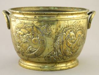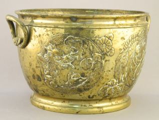 LOT 258 Japanese Brass Hibachi, 9" Handle to Handle. -------------- Estimate: $120 - $180 Sold For: $90 Auction Date: Tuesday, May 28 2024 at 4:00 PM