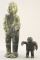 African Wood Carving of a Seated Man (32"H) & Woman (12 1/2"H) on Stand.