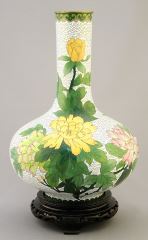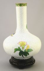 Chinese Cloisonne Enameled Bottle Vase with Peonies Motif, 10".