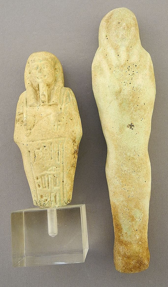 2 Egyptian Ushabti Figures, 3 1/2"H 5 1/2"H, Both with Bases.
