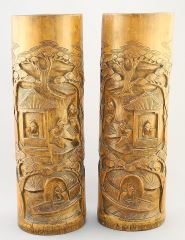 LOT 323 Pair of Chinese Carved Bamboo Vases, 12 1/2"H. Estimate: $50 - $80 Sold For: $30 Auction Date: Tuesday, May 28 2024 at 4:00 PM