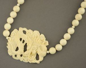 LOT 279 Ivory Beaded Necklace with Dragon Pendant, 27"L, NO EXPORT. Estimate: $150 - $200 Sold For: $110 Auction Date: Tuesday, May 28 2024 at 4:00 PM