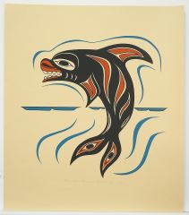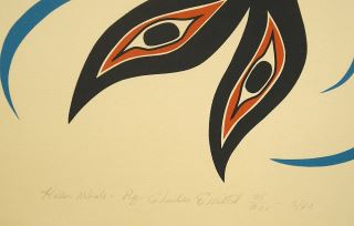Salish Serigraph signed Charles Elliott, #5/80, 19" x 16 1/2", "Killer Whale", #98/200.