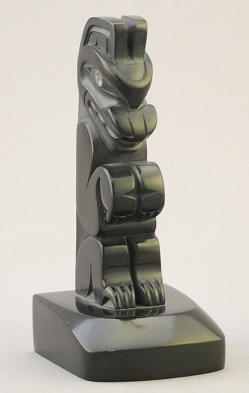 Model Argillite Pole Monogrammed DG (Donovan Gates), 3 7/8"h, "Bears".