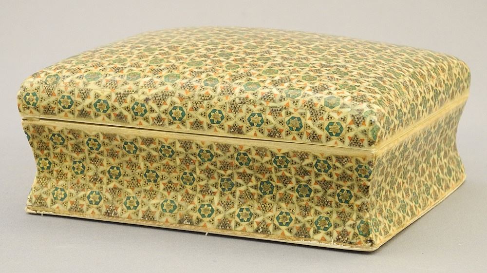 LOT 188 1920's Indian Benares Brass Tray & Mosaic Box. Estimate: $50 - $60 Sold For: $25 Auction Date: Tuesday, May 28 2024 at 4:00 PM