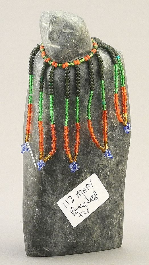Inuit Stone Sculpture signed with Syllabics by Mary Tutsuituk, 5"h, "Figure with Beads".