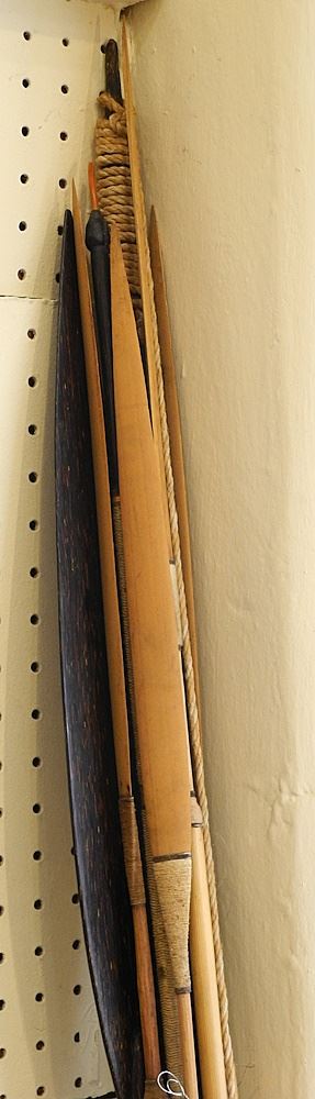 LOT 17 Collection of Bamboo & Hardwood Spears, Approximately 83"L (feathers noted), NO EXPORT. Estimate: $100 - $200 Sold For: $90 Auction Date: Tuesday, May 28 2024 at 4:00 PM