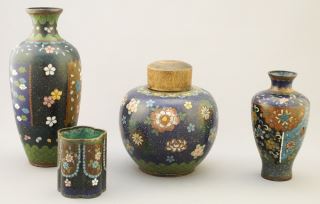 4 Cloisonne Vases & Jar, 2 1/2" - 7 1/8"h.
