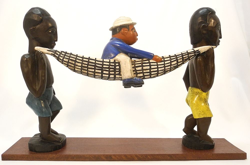 Baul Colonials Ivory Coast Porters with Canoe Sculpture.
