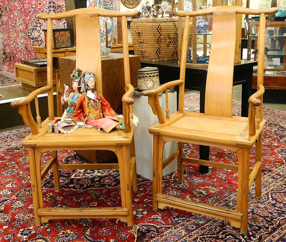 Pair of Yoke Back Scholars Chairs, 47"h.