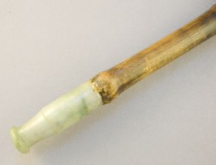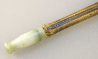 Bronze Bamboo & Jade Pipe, 20 1/2" Length.