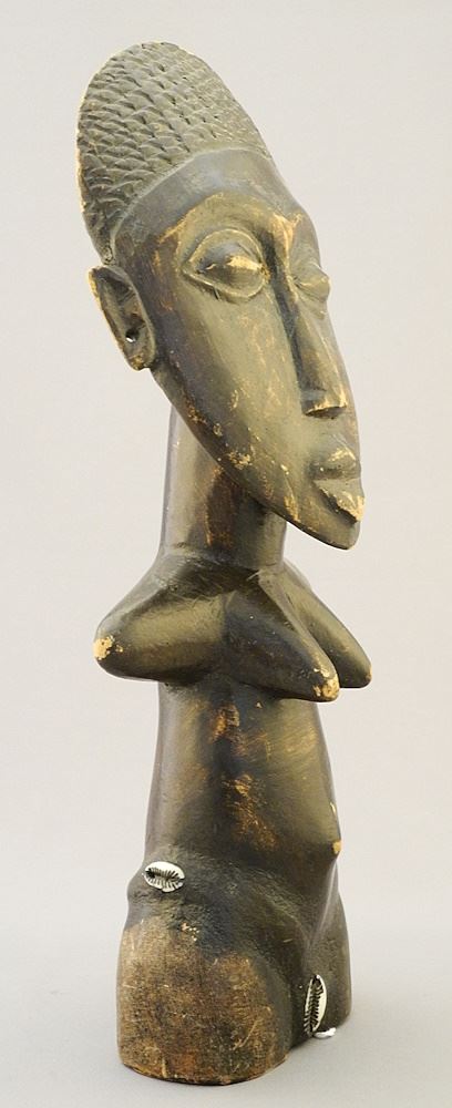African Fertility Figure Inlaid with Cowrie Shells, 12 5/8"H.