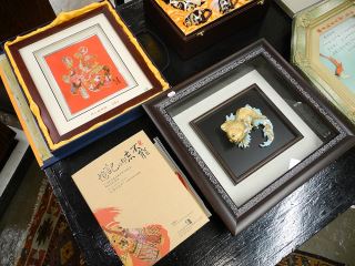 Collection of Chinese Presentation Gift Wares: Books / Tea Set / Plaques.