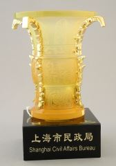 Shanghai Civil Affairs Bureau Molded & Carved Glass Presentation Vase in Case.