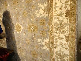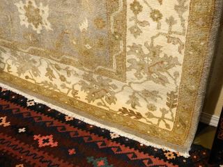 Hand Knotted Wool Carpet, Pale Blue & Ochre Approximately 12' x 9'3".