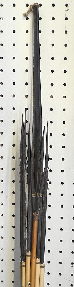 LOT 13 Bow & Collection of Arrows, Possibly Australian, 55"L. (feathers noted), NO EXPORT. Estimate: $100 - $200 Auction Date: Tuesday, May 28 2024 at 4:00 PM