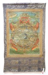 LOT 220 Tibetan Thangka, Sight 21 1/2" x 15 3/8", "Deity Mandala". Estimate: $100 - $200 Sold For: $325 Auction Date: Tuesday, May 28 2024 at 4:00 PM