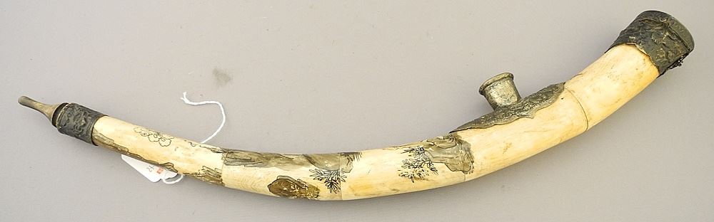 LOT 196 Chinese Metal Mounted Tessellated Bone Opium Pipe, 19 5/8"L, NO EXPORT Estimate: $60 - $100 Sold For: $70 Auction Date: Tuesday, July 16 2024 at 4:00 PM