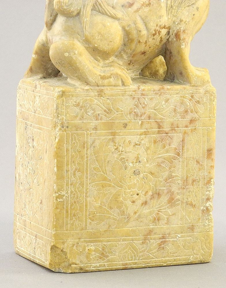 Pair of Chinese Softstone Buddhist Lion Dogs, 6 3/8"h.