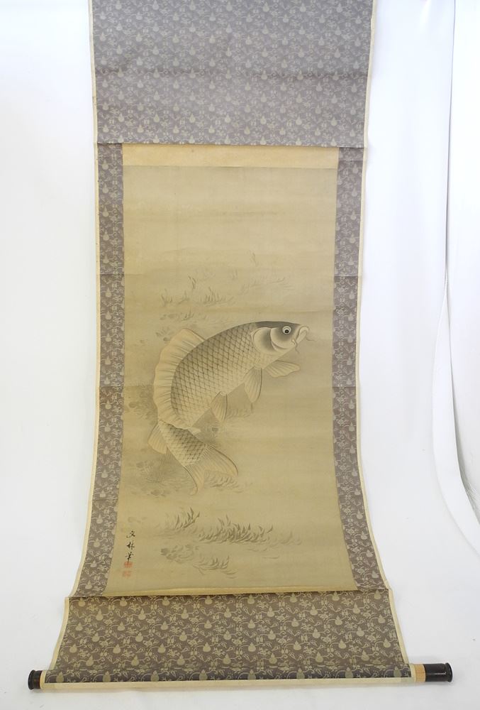 LOT 167 Japanese Scroll, Sight 43 3/4" x 21", "Koi". Estimate: $150 - $300 Auction Date: Tuesday, July 16 2024 at 4:00 PM