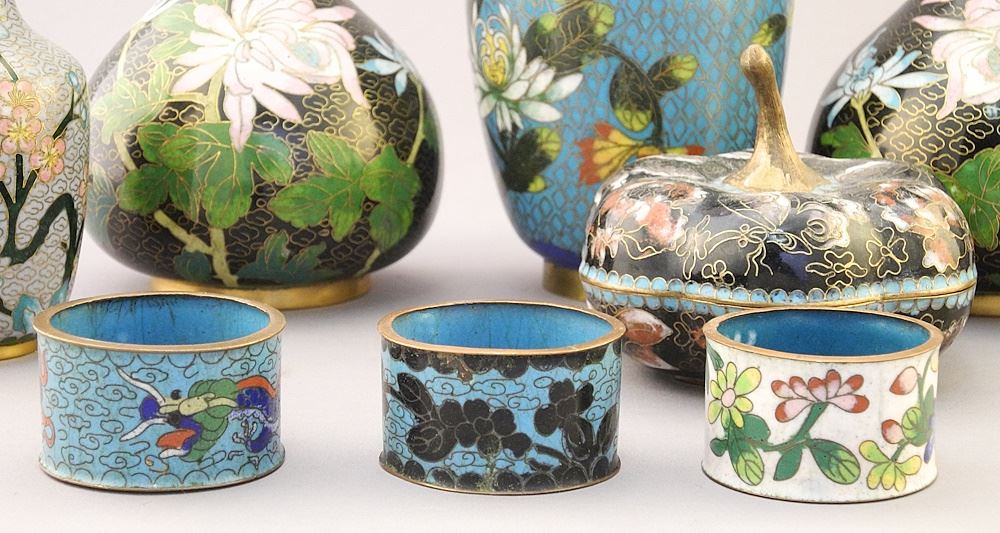 Collection of Various Chinese Cloisonne Wares, 1/2" - 6 3/8"h.