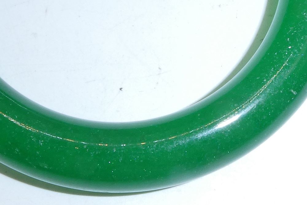 LOT 124 Spinach Green Jadeite Bangle, 3 1/2" Diameter. Estimate: $100 - $150 Auction Date: Tuesday, July 16 2024 at 4:00 PM