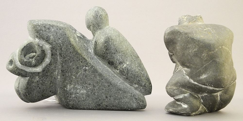 LOT 225 Mythological Hardstone Carving & Baker Lake "Hunter", 4 3/4". Estimate: $60 - $80 Sold For: $30 Auction Date: Tuesday, July 16 2024 at 4:00 PM