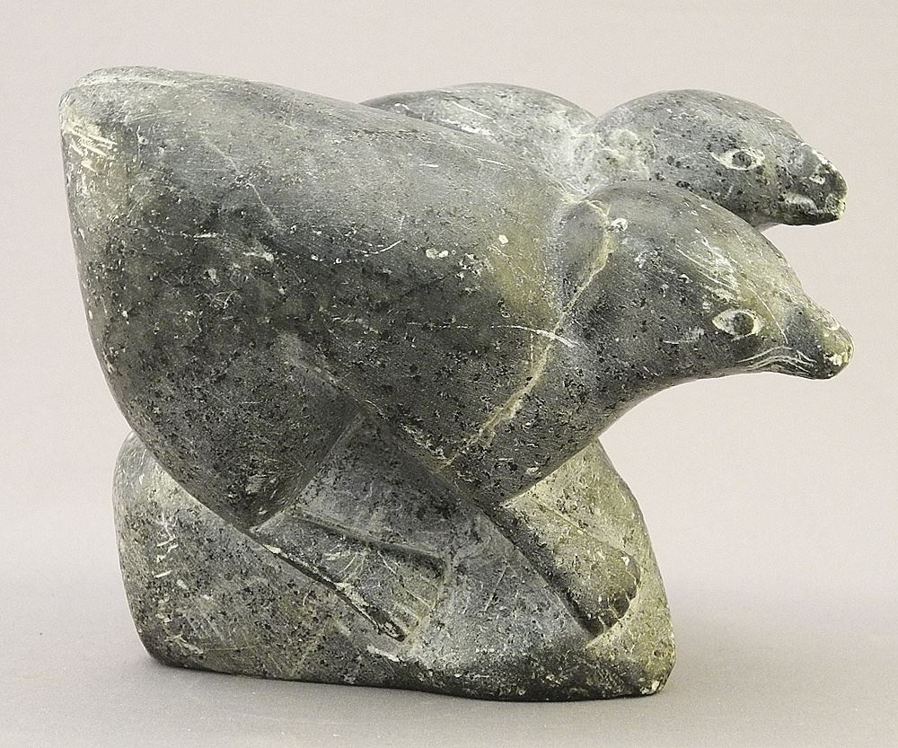Inuit Stone Sculpture signed Henry 759, 3 5/8" x 4 5/8" x 4 3/4", "Animal & Bird".