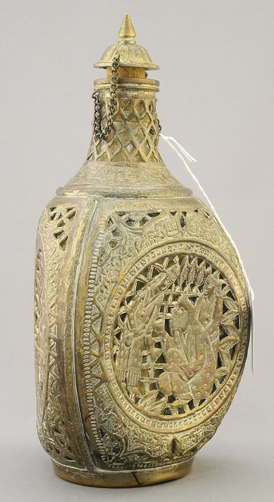 LOT 110 Persian Copper Overlay Bottle, 9 5/8"h. Estimate: $50 - $60 Sold For: $20 Auction Date: Tuesday, July 16 2024 at 4:00 PM