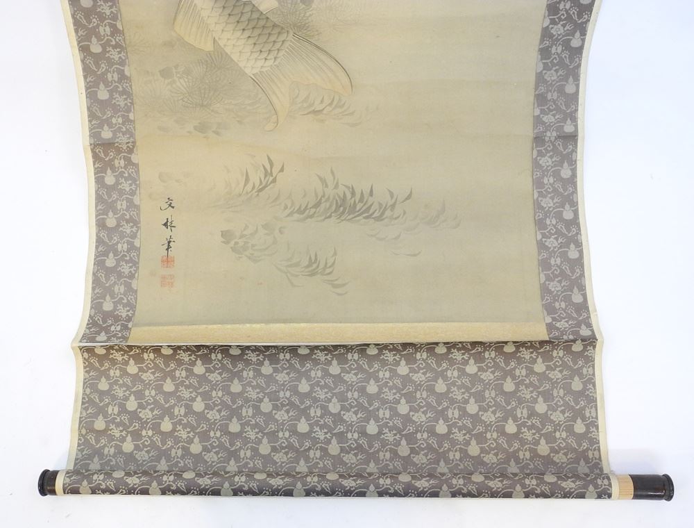 Japanese Scroll, Sight 43 3/4" x 21", "Koi".