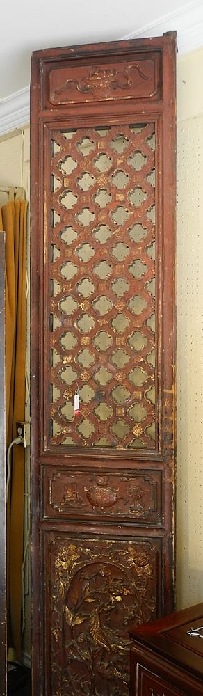 LOT 19 Pair of Chinese Gilt & Scarlet Lacquer Door Panels, 8'10" x 1'9" with Support Frame. Estimate: $300 - $400 Auction Date: Tuesday, July 16 2024 at 4:00 PM