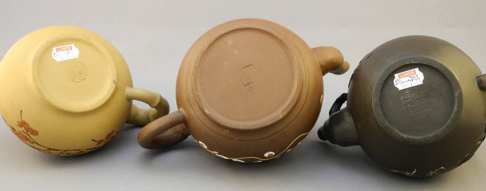 LOT 37 3 Yixing Ware "Bullet" Teapots, 3 5/8" - 4 1/4" High. Estimate: $150 - $200 Auction Date: Tuesday, July 16 2024 at 4:00 PM