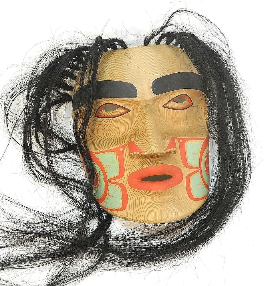 LOT 9 Kwagiulth Cedar Mask signed Kolten (Khasalus) Grant, 12 1/4"h, "Portrait Mask". Estimate: $500 - $1,000 Auction Date: Tuesday, July 16 2024 at 4:00 PM