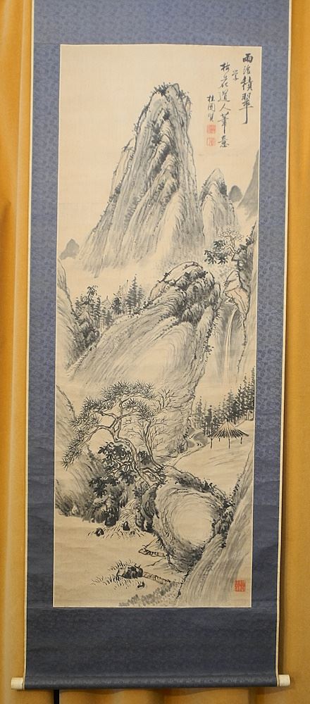 Ink Scroll Attributed to Sansui Keisen, Sight 53" x 18 3/4", "Flowering Mountains".
