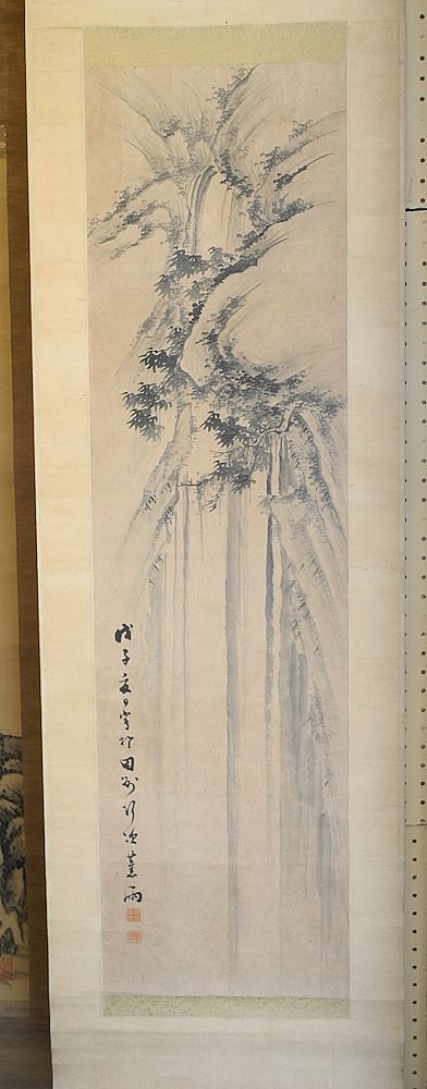 LOT 48 Ink Scroll Attributed to Shoyu, Sight 48" x 13", "Waterfall". Estimate: $200 - $400 Auction Date: Tuesday, July 16 2024 at 4:00 PM