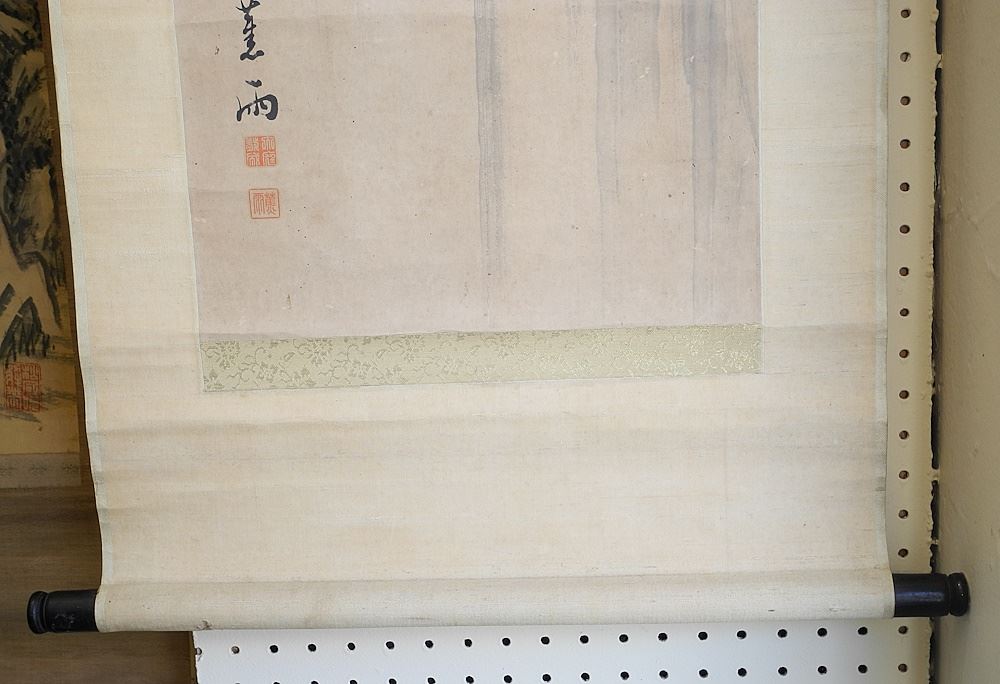 Ink Scroll Attributed to Shoyu, Sight 48" x 13", "Waterfall".