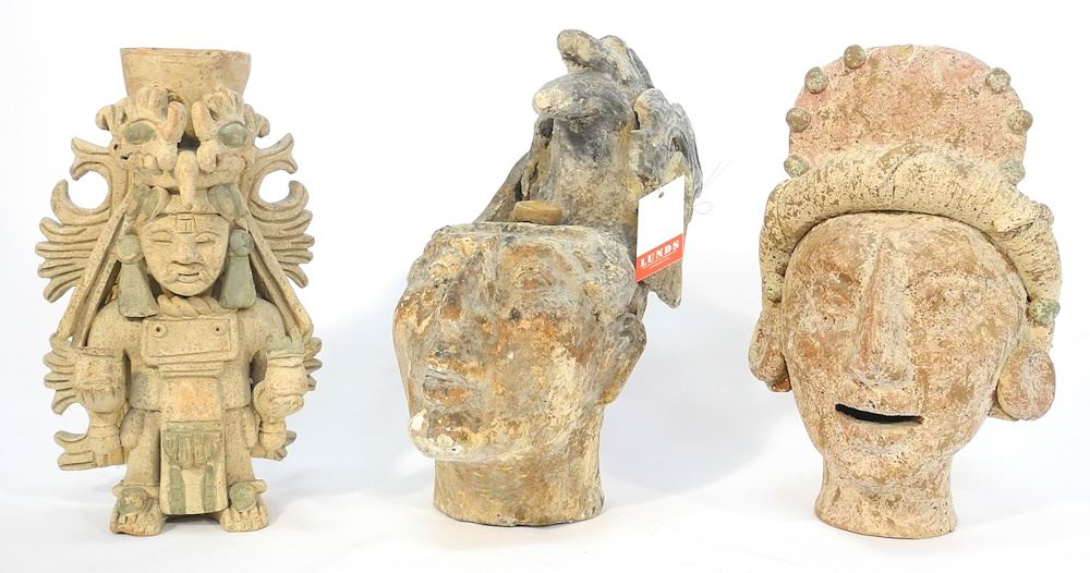 Collection of Pre-Columbian Style Pottery Figures, 6 3/4" - 12"h (damage & restoration note