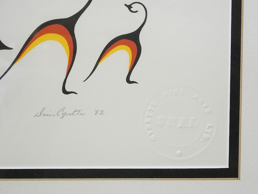 LOT 98 2 Ojibway Serigraph signed Doris Cyrette, 8 3/8" x 11 1/4", "The Parent & The Vigil" ed.99. Estimate: $60 - $100 Auction Date: Tuesday, July 16 2024 at 4:00 PM