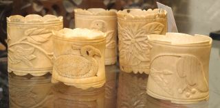 5 Congolese Napkin Rings, 1 7/8" - 2 3/8"h, NO EXPORT. -