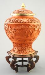 LOT 267 Cinnabar Lacquer Covered Vase (9 1/4"h) on Stand. Estimate: $100 - $150 Auction Date: Tuesday, September 17 2024 at 4:00 PM