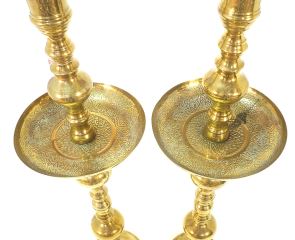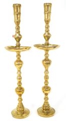Pair of Thai Brass Candlesticks, 38 3/8"h.