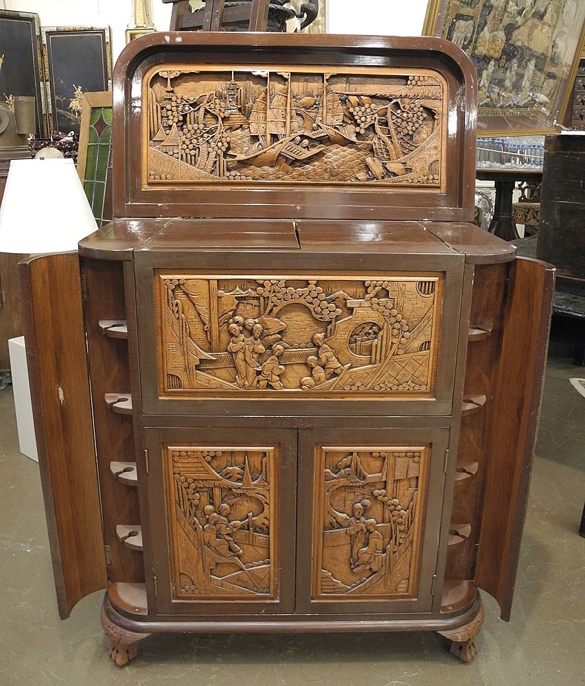 LOT 269 Chinese Elaborately Carved Fold-Out Bar, 36" x 42"h. Estimate: $250 - $350 Auction Date: Tuesday, September 17 2024 at 4:00 PM