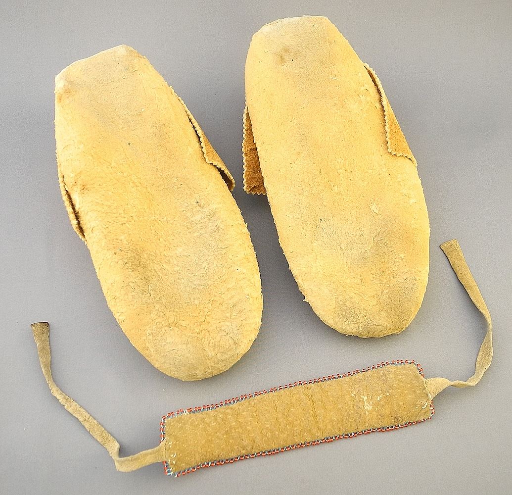 Pair of Cree Beaded Moccasins (9 3/4"L) & Porcupine Quill Wristband.