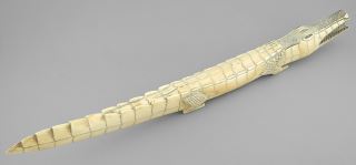 LOT 230 Congolese Alligator Carving, 18 7/8" , NO EXPORT. Estimate: $200 - $400 Sold For: $190 Auction Date: Tuesday, September 17 2024 at 4:00 PM