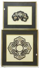 2 Mandarin Silk Collars, Framed, 8 3/8" & 12 1/4"w.