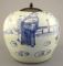 Chinese Celadon Grand Blue & White Porcelain Jar (7 3/8"h) with Later Wooden Cover.