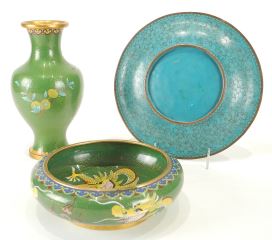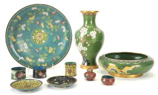 LOT 102 Cloisonne Group of 10 1/4" Plate / Vase / Napkin Rings etc. Estimate: $50 - $80 Sold For: $80 Auction Date: Tuesday, November 26 2024 at 4:00 PM