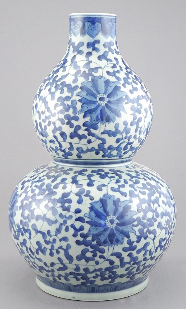 LOT 55 Chinese Porcelain Double Gourd Vase, 14 1/4"h. Estimate: $50 - $60 Sold For: $50 Auction Date: Tuesday, November 26 2024 at 4:00 PM
